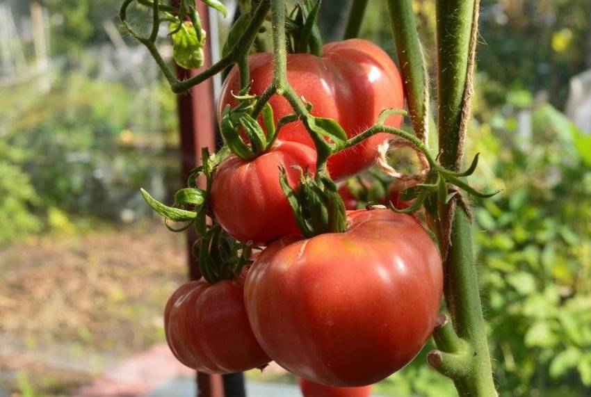 Томаты вырастают крупными, с примерным весом около пол килограмма