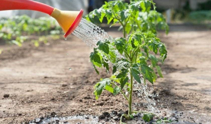 Томатам требуется регулярный полив раз в несколько дней или по мере высыхания почвы. Поливают вечером или утром, когда нет прямых солнечных лучей, воду подогревают.