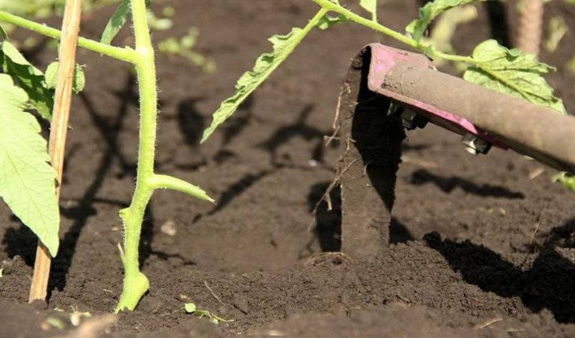 Грядки нуждаются в регулярном рыхлении. Это дает кустам больше кислорода. Также не допускайте зарастания огорода сорняками. Сорные растения забирают у томатов питательные вещества.