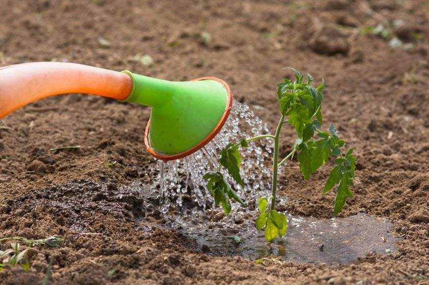 Переувлажнение земли так же вредно для помидоров, как и долгая засуха. В первое время, воды нужно небольшое количество, чтобы растение формировало полноценную и сильную корневую систему, которая будет поглощать влагу из земли. Спустя 20 суток полив проводят один раз в неделю. Делать это нужно вечером или рано утром и тёплой водой, иначе помидор начнёт болеть.