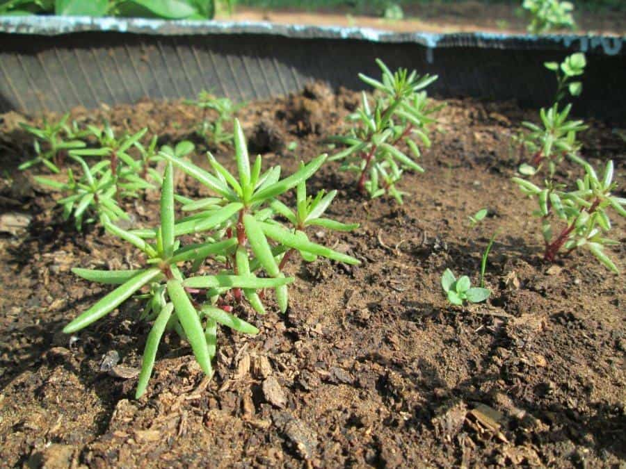 - Высадка. Растения располагают на расстоянии до 20 см друг от друга, в первые пару дней после посадки их необходимо поливать ежедневно, а в последующем – по мере высыхания почвы. Кроме того, до тех пор, пока растения не разрастутся в сплошной ковёр, полностью закрывающий почву, высаженный портулак нужно будет пропалывать от сорняков и рыхлить вокруг него землю.