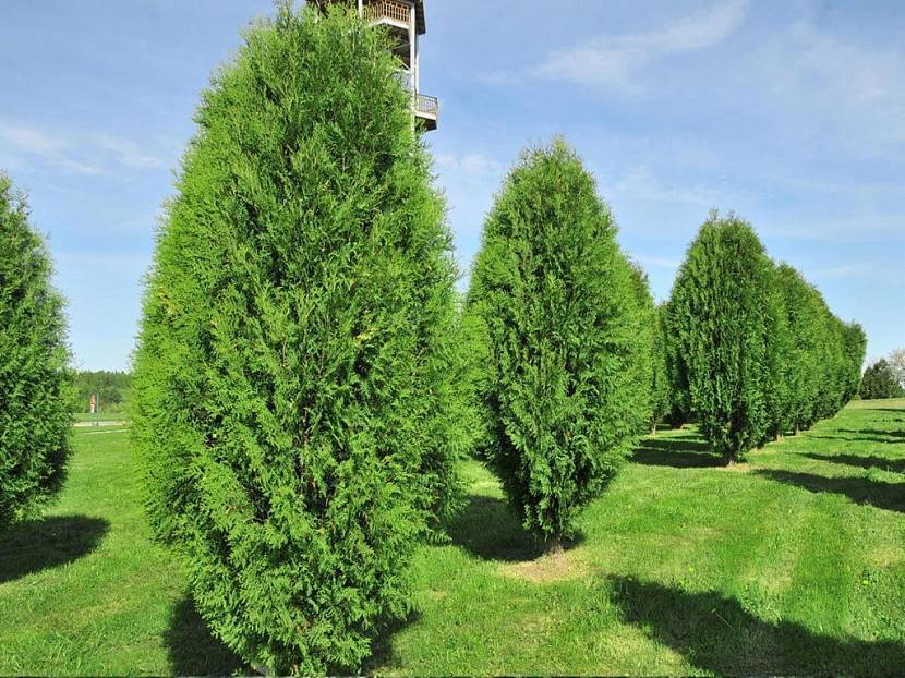 Пирамидальные туи могут вырастать до двадцати метров в высоту, а другие — до двух метров. Чаще всего их высаживают отдельно или в сочетании с различными растениями.