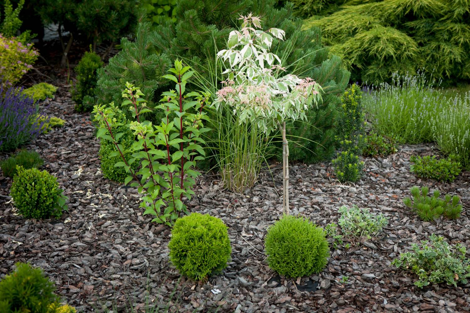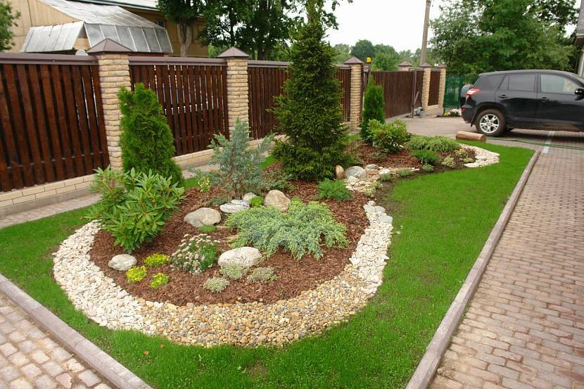 Но комбинировать хвойные и лиственные растения нужно осторожно. Очень легко совершить ошибку при выборе цветовых решений и стиля