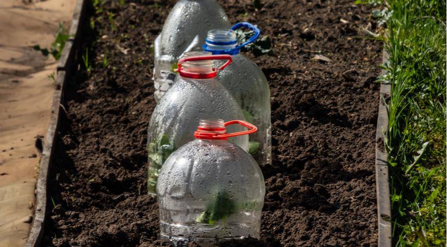 Защитите саженцы канистрами из-под воды от заморозков и града. Если в вашем регионе обещают похолодание, натяните по дугам лутрасил, чтобы защитить растения тыквы до появления первых цветков.