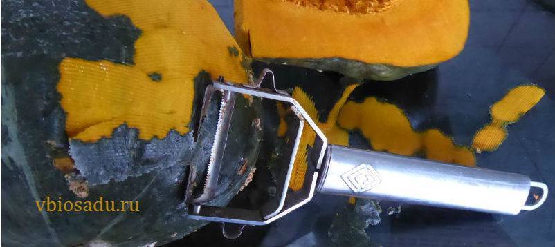 Можно тыкву сначала слегка отварить до мягкости кожуры, а потом очистить.