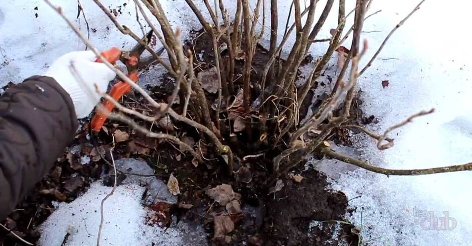 - Можно убрать несколько 6-7 летних веток с целью прореживания куста.