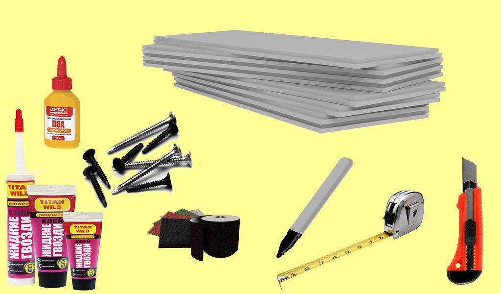 - Нож с острым лезвием, при помощи которого можно будет сделать раскрой материала.