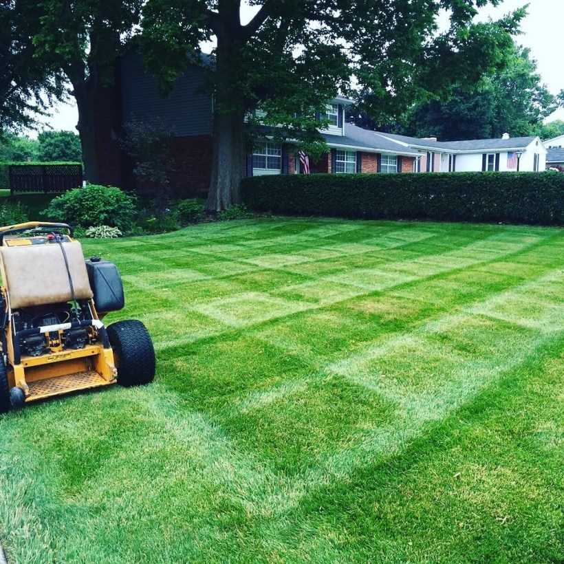 После нее обязательно проводится подкормка комплексным удобрением. Через месяц проводят повторную стрижку. Направление скашивания в этот раз должно быть под углом к предыдущему.