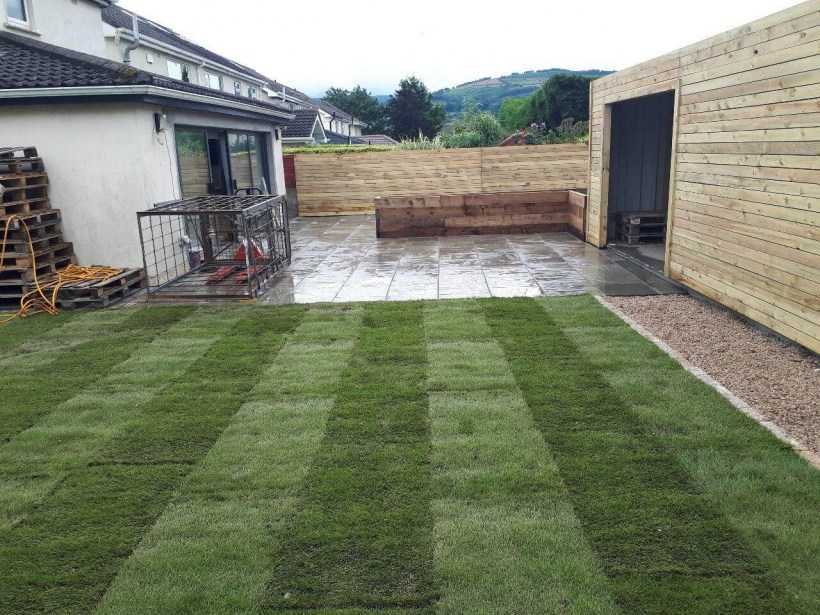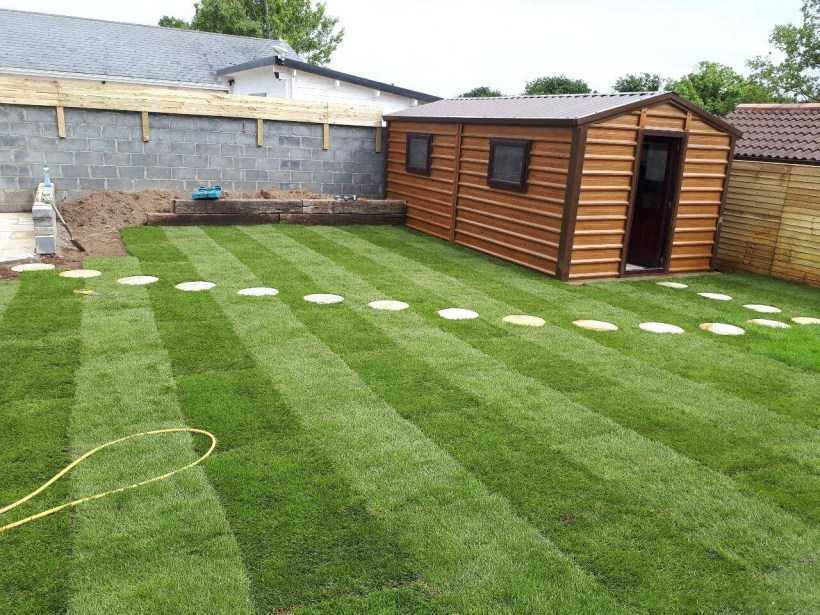 Фронт работ после посадки газона