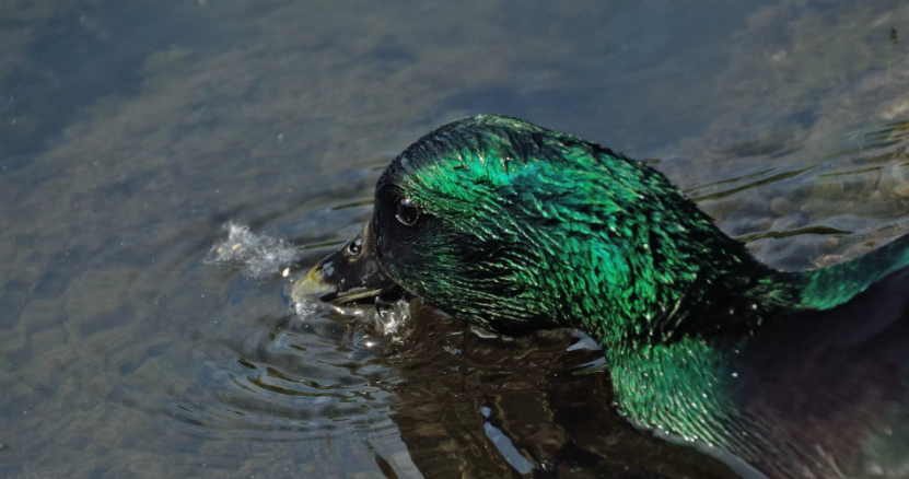 Преобладание цветовой гаммы зависит от половой принадлежности утки. Например, самцы на свету становятся бледно-синего цвета, тогда как самки приобретают насыщенно зеленый оттенок. Необычный отлив чаще сосредоточен в верхней части корпуса, уже в размытом виде спускается к лапам.