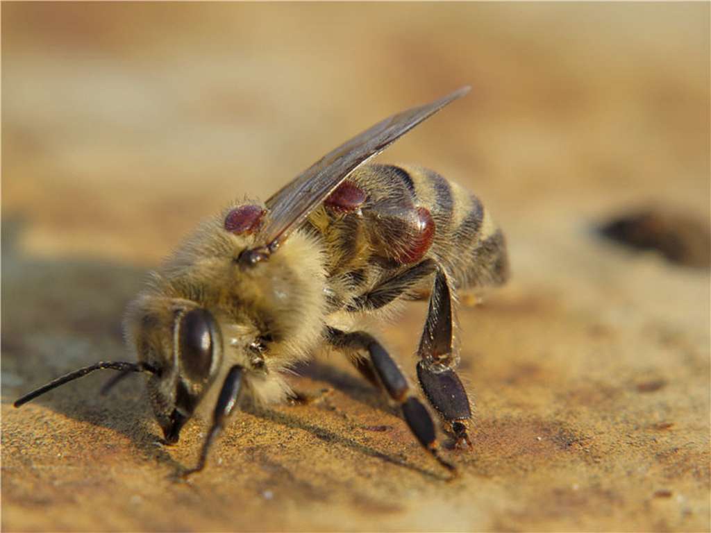Пораженная клещем пчела.