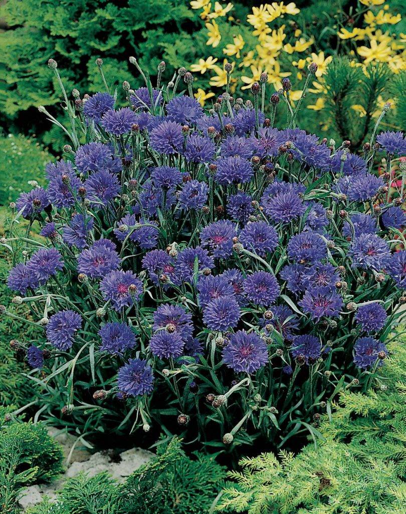 Садовые многолетники нужны для обновления рельефа участка, водоемов. Первый план в цветнике могут занимать среднерослые васильки: луговой, горный, подбеленный. Можно разбавить посадки белыми ромашками, гибридной лапчаткой. В рокарии яркими пятнами смотрятся островки васильков. Полевые виды растений выбирают для деревенского стиля сада.