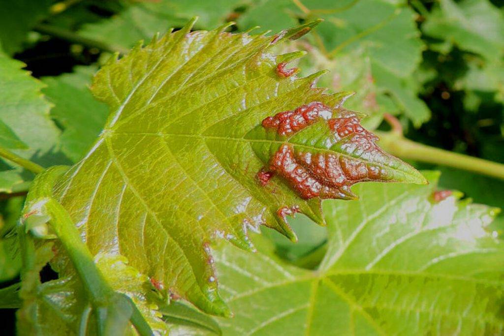 Поражение листьев виноградным клещом