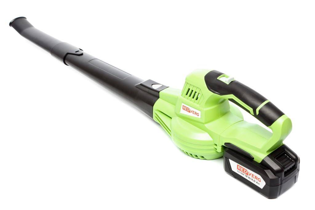 Ручка имеет мягкую эластичную накладку, что позволяет комфортно работать с инструментом в любом положении, обеспечивая надежный захват и предотвращая скольжение. В нее встроены все элементы управления, поэтому действия легко выполнять одной рукой. Модель «RedVerg RD-B18V» оснащена патрубком-воздуховодом с фиксирующей кнопкой на корпусе. Его цилиндрическая форма способствует большей эффективности. Для изготовления крыльчатки использовался полимер, устойчивый к ударам, царапинам.