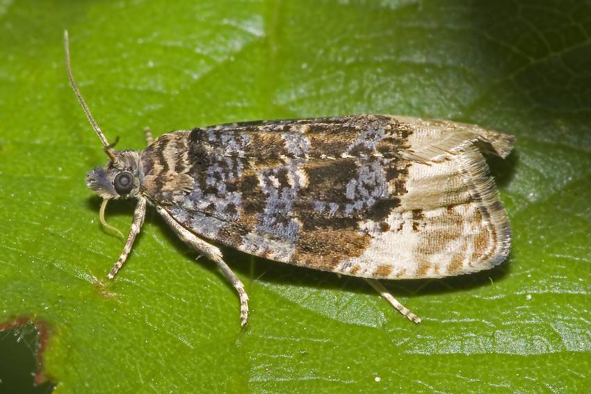 Калинная листовертка обычно повреждает калину, а так же горную сосну. Этот вредитель калины представляет собой гусеницу темную серо-голубую или зеленовато-оливкового цвета, по бокам желтоватая, вся покрытая светленькими волосками со светло-коричневой головой. Гусеницы (вредители калины), которые родились весной, съедают почки, когда появятся листья, съедают и повреждают их, предварительно опутав их паутиной и сбив в комок. Листовёртка окукливается к середине лета в тех местах, где питаются. При массовом своем размножении калинная листовертка способна уничтожить большое количество листьев, а это приводит к сильному снижению урожая.