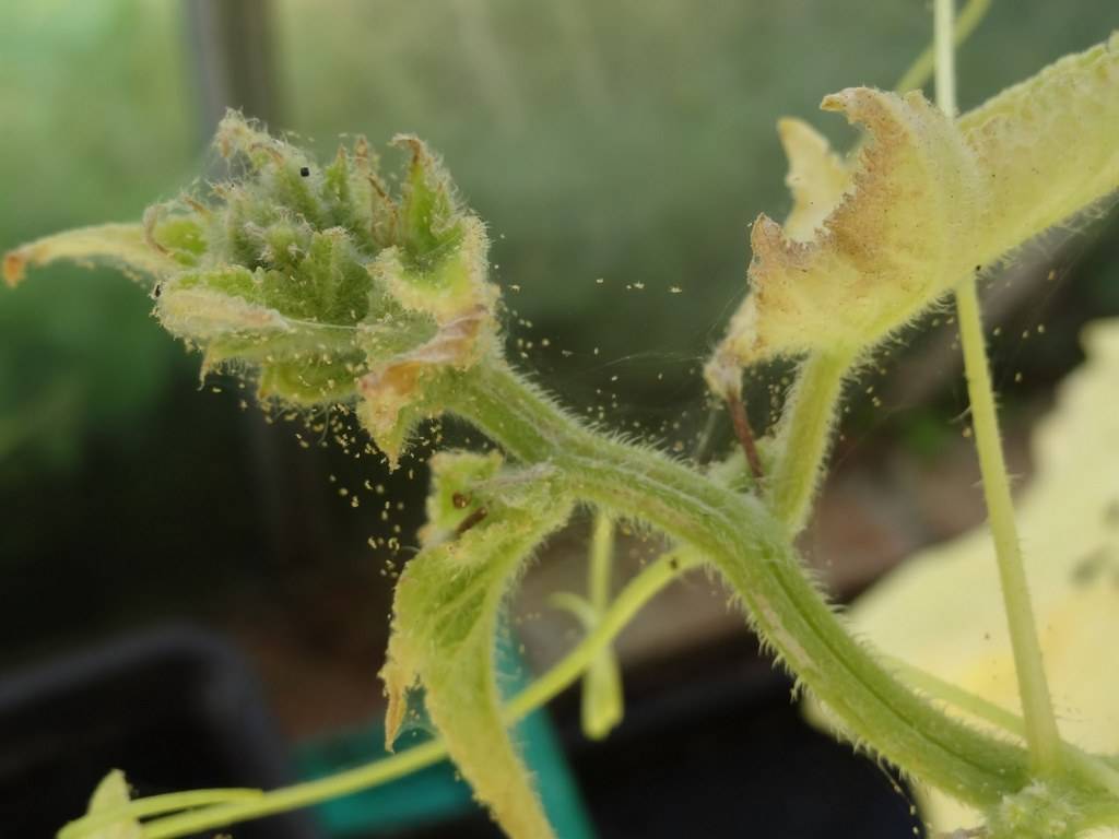 Членистоногое быстро размножается, за короткое время может распространиться на огромную территорию. Питается, высасывая сок из листьев. Пораженный огуречник быстро высыхает и гибнет.