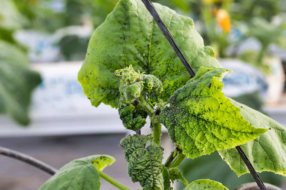 Это один из самых злостных вредителей огурцов – коварное, очень маленькое насекомое прячется на нижней части огуречной листвы. Визуально бахчевую тлю можно обнаружить почти сразу после ее появления, однако далеко не всегда у огородников хватает времени осматривать каждый листок.