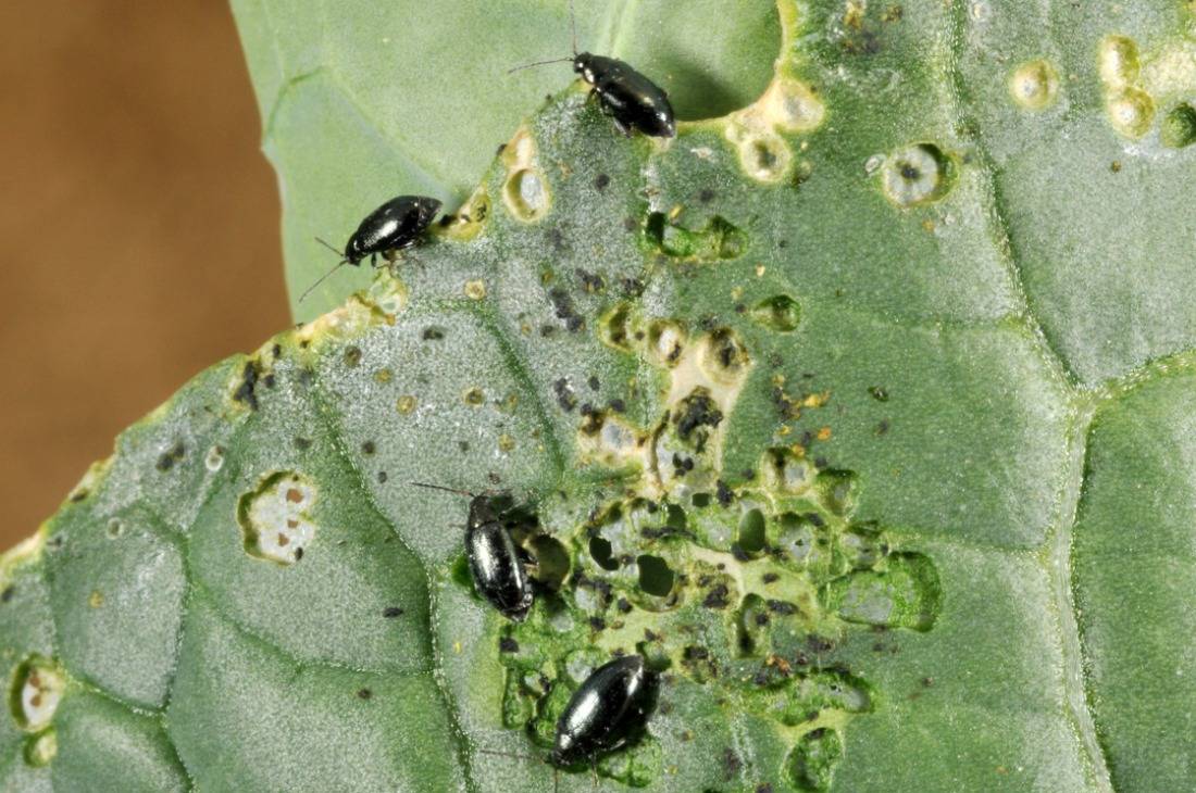 Чёрная блошка — крохотный жучок тёмного цвета (1,8–3 мм). Из листьев огурца черная блошка делает решето, высасывая сок растения и прогрызая ткани