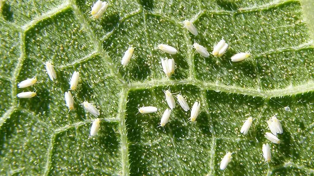 Этот вредитель — самое распространённое насекомое, с которым приходится бороться при выращивании огурцов как в открытом грунте, так и в теплицах или парниках. После поражения белокрылкой на огуречных листьях появляется множество светлых пятен. Поражённые растения сначала желтеют, потом теряют листья, перестают плодоносить. Белокрылка является переносчиком вирусных инфекций, способных уничтожить все посадки огурцов.