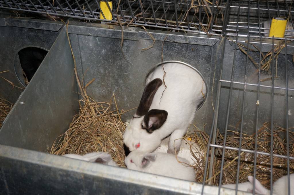 - 25-29 день беременности – перенос крольчихи в клетку с маточником или установка маточного гнезда.