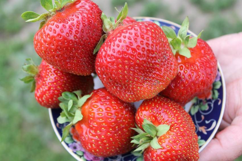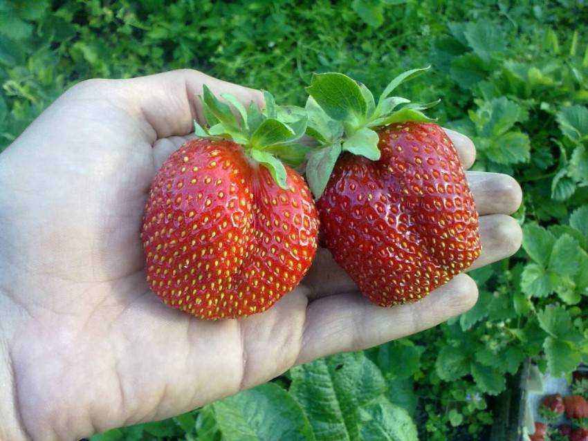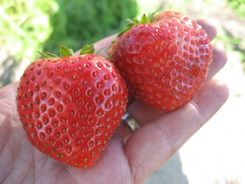 Для ягод характерен большой размер выровненная форма и насыщенный красный цвет. В некоторых случаях вес одной клубники может достигать до 125 грамм, а в диаметре до 8-10 см.