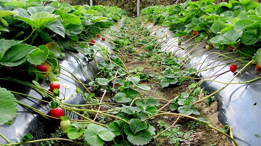 Мульчирование необходимо клубнике только в холодных регионах. В теплом климате растение прекрасно зимует без мульчи. В качестве покрытия можно использовать обыкновенную солому, скошенную траву, древесные опилки.