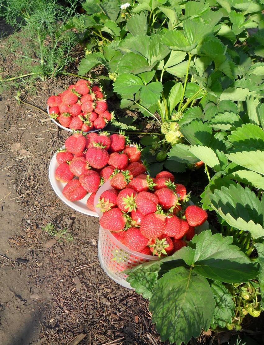 И что я только не делала — и удобряла я свою земляничку, и биогумусом, и «Агриколой» для ягодных культур, уж очень они отзываются на такие удобрения. И поливала, и на зиму укрывала — вдруг подмерзает. Разочаровалась в этой пресловутой ‘Гигантелле’ совсем. Решила уже перекопать да выбросить, чтоб настроение не портила да место не занимала. А тут как-то на рынке разговорилась с нашим агрономом и пожалилась ему на свою беду. Вот он мне и рассказал, что у этой клубники, как у всякой королевы, плодоносящий только первый росток на усах, только он, королевский — женский. А остальные — все пажи у своей королевы, мужские, цвести цветут, а ягод не жди. Потому-то она у меня и цветёт шикарно, на загляденье, а ягод и плодоносящих кустиков мало. Пришла я домой, отметила ленточками все плодоносящие кустики, набралось их всего 7 из целой грядки, за столько лет. Посадила я их на отдельную грядку, а остальные все выкопала да выбросила.
